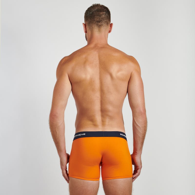 Men’sorange carrot boxers. Low-rise boxerswith a flattering cut in a soft fabric, Oeko-Tex certified. High-quality fabric (210g./sq.m) made up of 93%organic cotton(GOTS) and 7% elastane. The waistband is flexible and does not mark the skin, the satin label is non-irritating for optimal comfort.