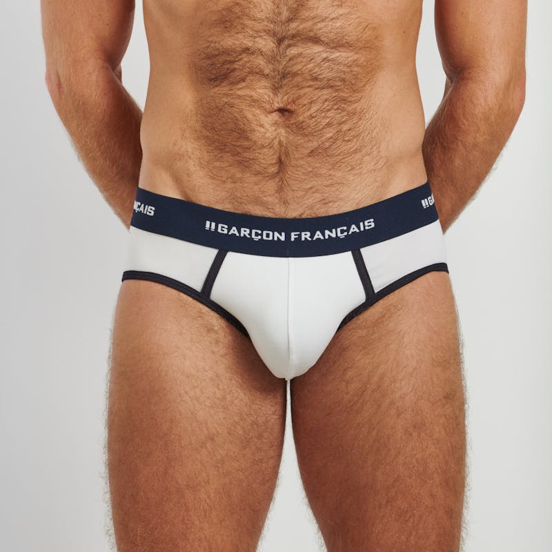 Men’s white briefs. Low-rise briefs with a flattering cut in a soft fabric, Oeko-Tex certified.